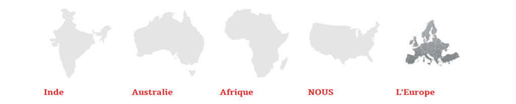Angleterre, États-Unis, Brésil, Espagne, Allemagne, Canada, Singapour, Mexique, Italie, Afrique du Sud, Égypte, Australie, Pays-Bas, Pays de Galles, îles Anglo-Normandes, île de Man et divers districts d’outre-mer.